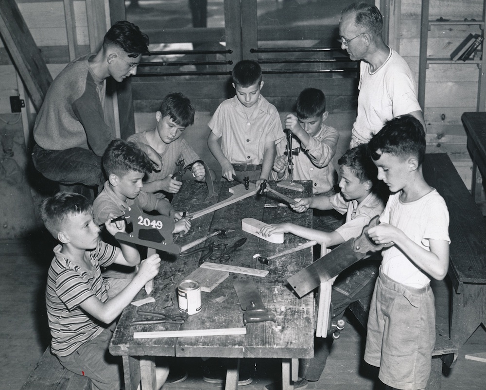 Handicrafts ID: 7091 | This file appears in: River Road Camp The daily life of a YMCA camper typically included crafts, swimming, physical fitness and campfire entertainment. Pictured above is the River Road Camp craft shop. | Source: Cleveland Metroparks Download Original File SourceCleveland Metroparks "Handicrafts" appears in: River Road Camp