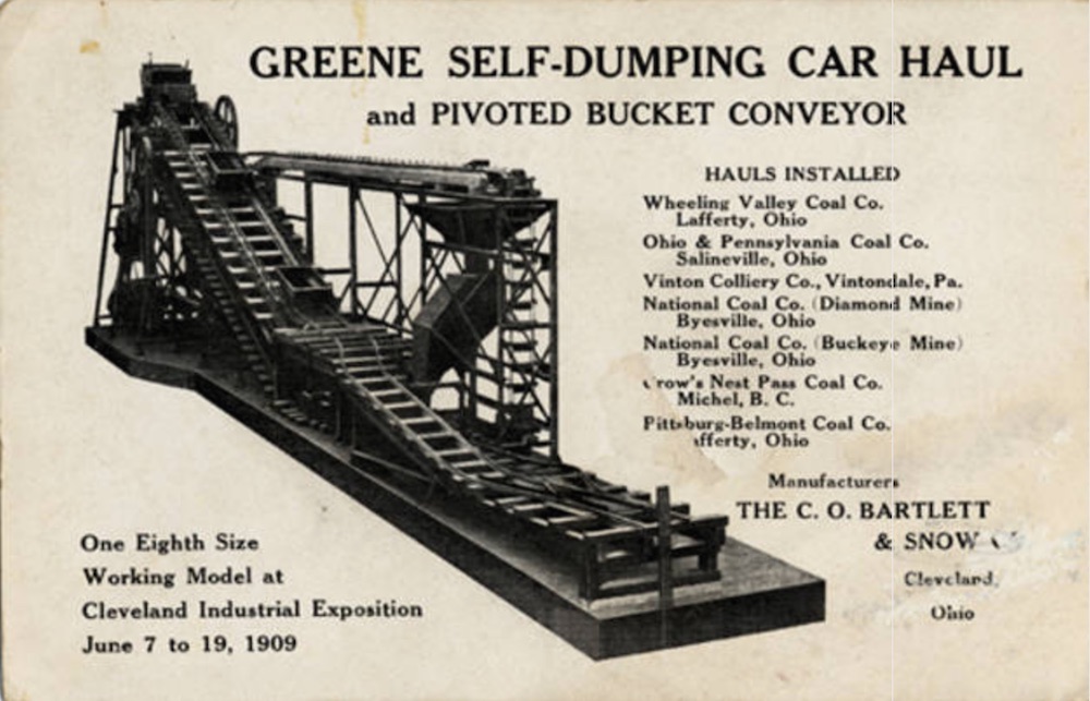 This postcard depicts a 1/8-scale model of a car haul manufactured for a number of railroads by the C. O. Bartlett & Snow Co. of Cleveland. | Date: 1909 | Source: Cleveland Memory Project, Cleveland State University Library Special CollectionsDownload Original File