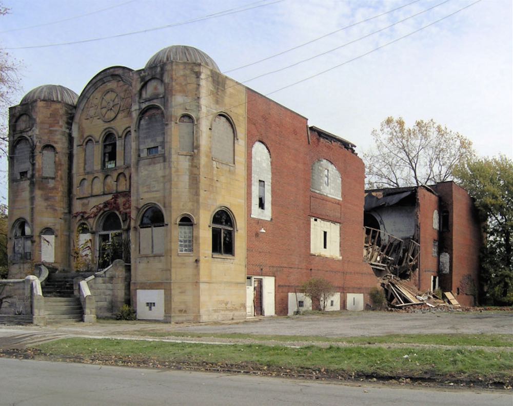 A prior home of Chibas Jerusalem, which merged with Oheb Zedek in the early 1950s, was located at 877 Parkwood Drive in the Glenville neighborhood. As shown here, the abandoned building suffered a wall collapse in 2013. The building has since been demolished. | Creator: Arnold Berger | Date: November 7, 2013 | Source: http://www.clevelandjewishhistory.net/syn/chibas-jerusalem.htmDownload Original File