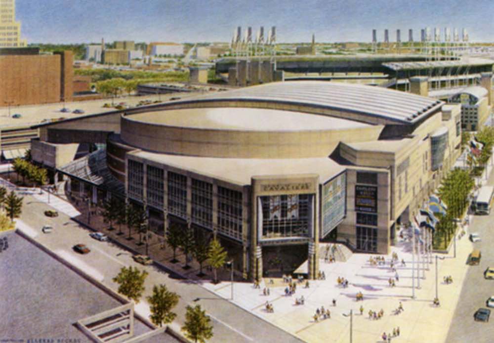 "Rendering of Gund Arena and Jacobs Field, 1992" appears in: Progressive Field