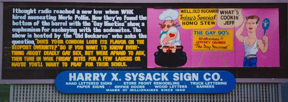 The Gay 90s radio show was a hit, creating fans as well as haters throughout Northeast Ohio and in Cleveland's own back yard. Or, front yard, as it were, when Harry Sysack dedicated the billboard on his property in the city's Old Brooklyn neighborhood to Buck Harris and The Gay 90s. | Source: Buck Harris ArchiveDownload Original File