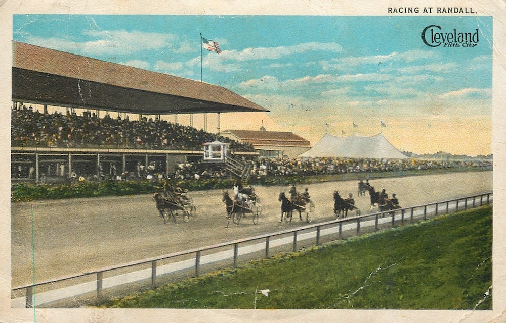 This postcard shows Randall Park Race Track, namesake for the mall that replaced it in the 1970s. Across Emery Road, Thistledown continues North Randall's horse-racing tradition. | Date: ca. 1910s | Source: J. Mark Souther Postcard CollectionDownload Original File
