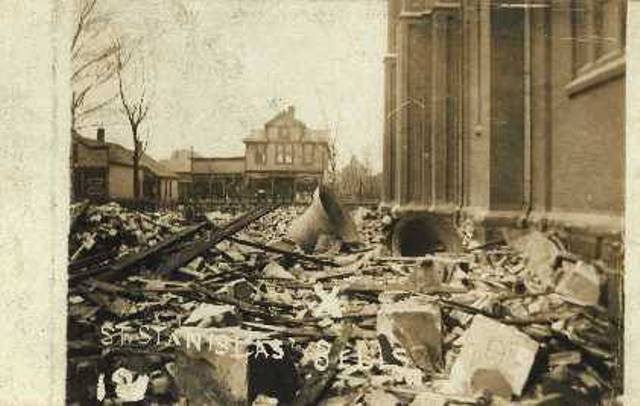 The collapse of St. Stanislaus' spires and the resulting death of a child who was hit by a brick convinced city leaders some form of regulation on building heights needed to be enacted. | Date: 1909 | Source: Photo Courtesy of Glen SobolaDownload Original File