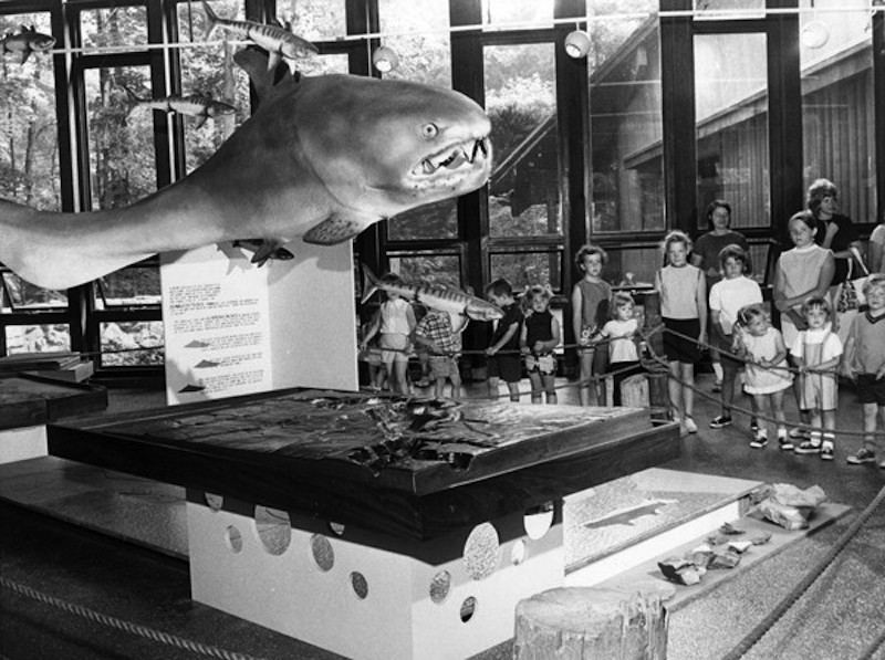 While long extinct, the idea that a fearsome arthrodire was once an inhabitant of the region grabs the attention of young and old alike. The exhibition of realistic models and ancient fossils isn't always mere spectacle, however. Displays are often used by education institutions to encourage the exploration of sciences such as geology, biology, and paleontology.