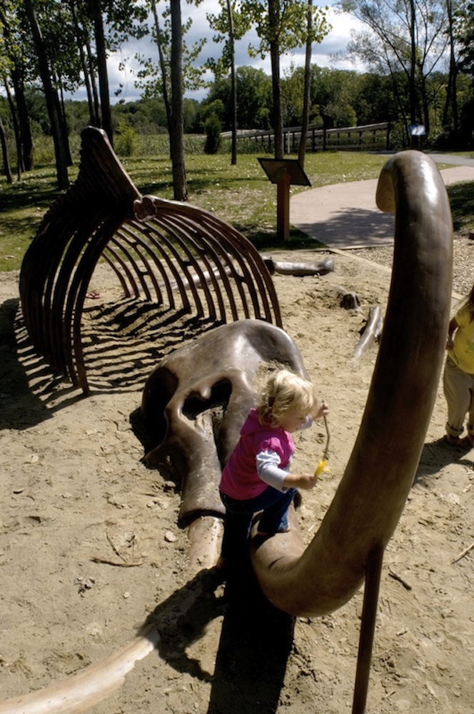 While a permit is needed to dig for fossils in the Cleveland Metroparks, visitors to Big Creek Reservation can still unearth evidence of ancient life at the Prehistoric Play Pit exhibit. The dig site features a full size model of a Mastodon's fossilized remains; the shaggy-haired beasts roamed North America during the Ice Age. | Source: Courtesy of Cleveland MetroparksDownload Original File