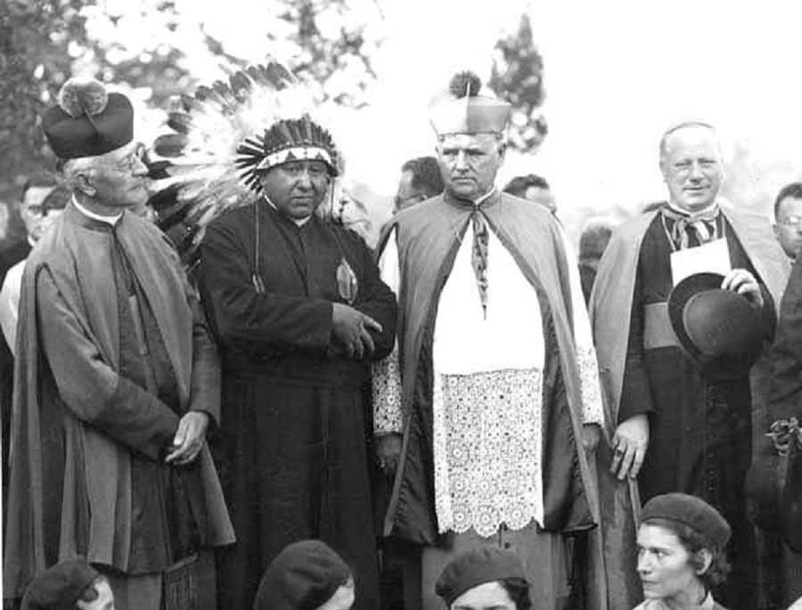 "Father Vitus Hribar (on the left) at a ceremony at the Cleveland Cultural Gardens" appears in: Saint Vitus Church