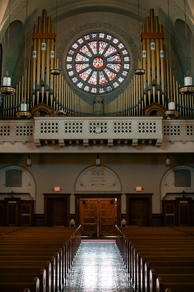 This view of the back wall of the church shows the impressive organ built by Cleveland's own Holtkamp Organ Co. which has been operated by the same family since 1855. | Creator: Hilary Bovay | Date: 2014 | Source: www.HilaryBovay.comDownload Original File