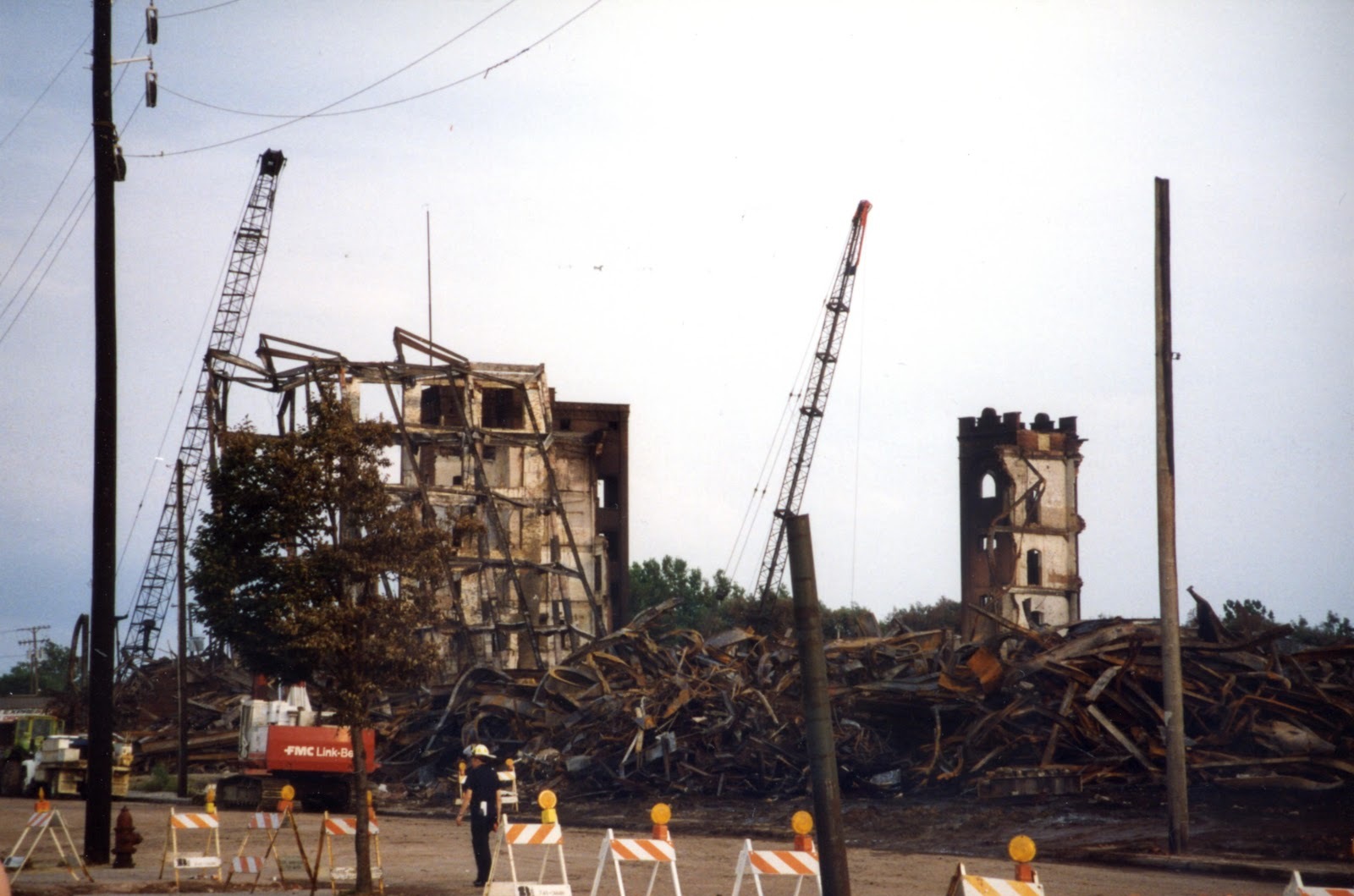 Damage at Cleveland Worsted Mills ID: 7765 | This file appears in: Cleveland Worsted Mills Another angle of the damage done to the Cleveland Worsted Mills complex following the fire | Source: Frank Dutton Download Original File SourceFrank Dutton "Damage at Cleveland Worsted Mills" appears in: Cleveland Worsted Mills