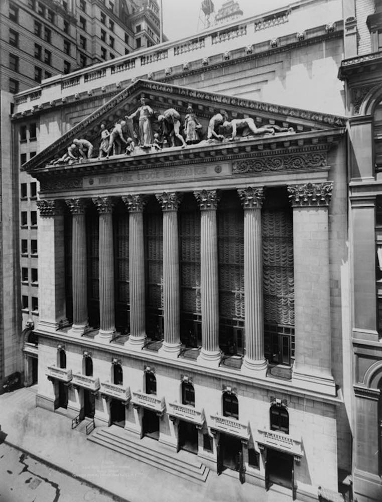 Designed in 1903 by George B. Post, the New York Stock Exchange Building includes a pediment sculpted by John Quincy Adams Ward called "Integrity Protecting the Works of Man." In Cleveland, Post seems to have drawn some inspiration for the Cleveland Trust Company Building from his earlier work in New York. | Creator: Irving Underhill | Date: ca. 1908 | Source: Library of Congress Prints and Photographs DivisionDownload Original File