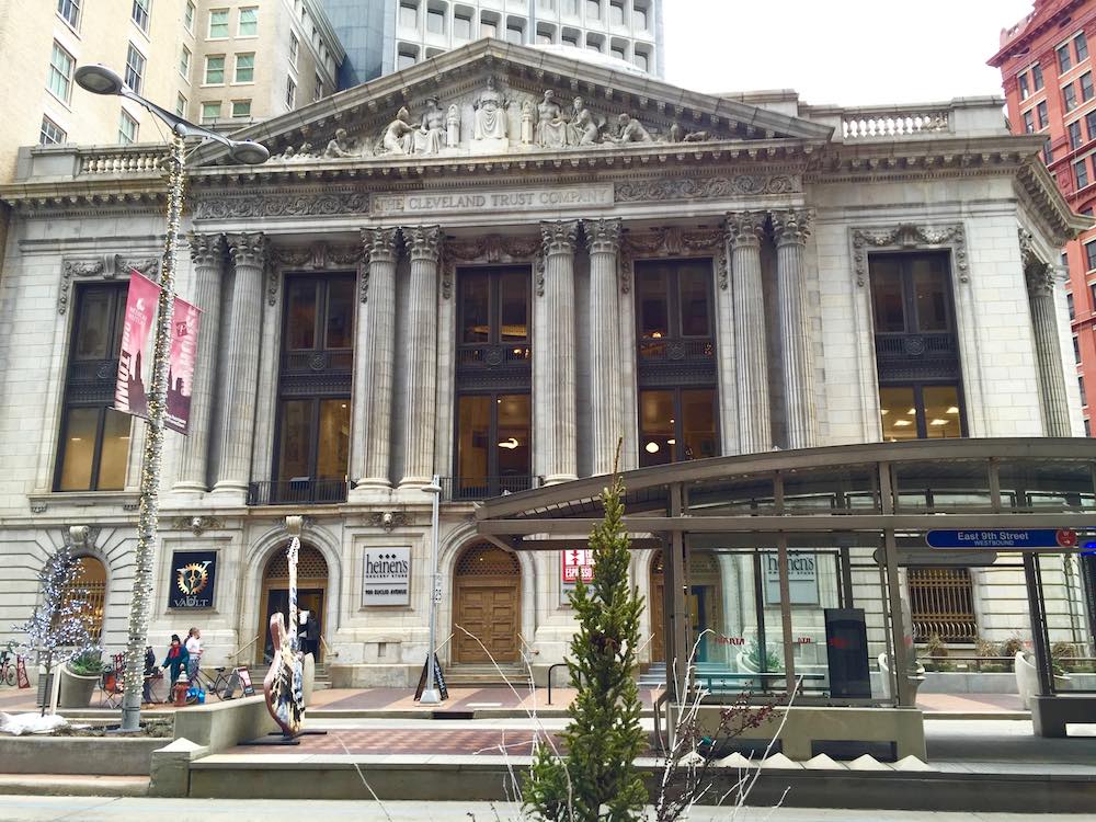 The Cleveland Trust Company Building’s outer pediments were designed by Karl Bitter. The ones facing Euclid Avenue represent land- and sea-based means of acquiring wealth, such as mining and fishing. Seated between the land and sea halves is a figure that represents banking—the point where resources and accumulation of wealth come together. | Creator: J. Mark Souther | Date: December 17, 2015Download Original File