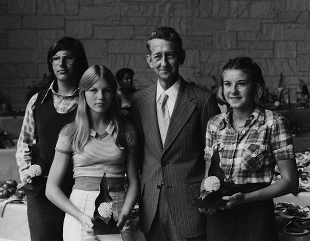 Agricola winners stand with their teacher, Luther Karrer, at a Garden Fair in September 1975. The Agricola, “the Oscar for horticulture,” was given to winners in three categories: flower arranging, plant growing, and for the posters, essays, or caricatures. | Source: Cleveland State Library Special CollectionsDownload Original File