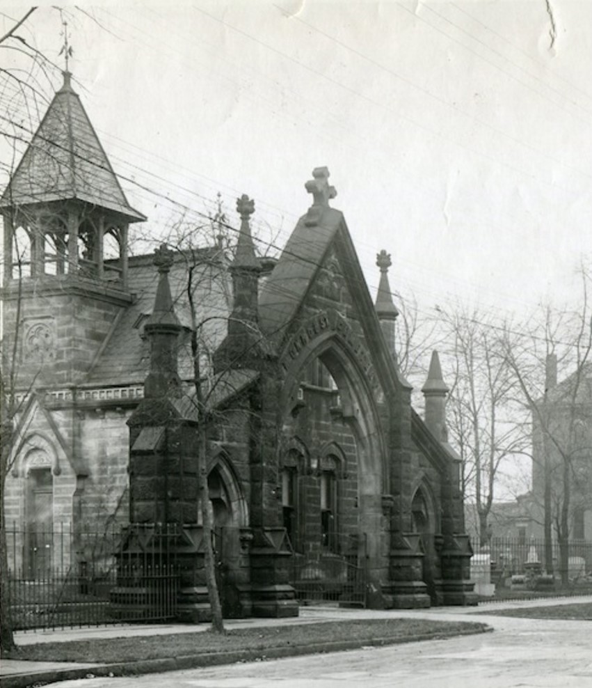 The land for Monroe Street Cemetery on Monroe Avenue, in Cleveland, was conveyed by Josiah Barber to William Burton, Trustee for Brooklyn Township, in January 1835, with the stipulation that it would be transferred to the new incorporated village of Brooklyn (it actually became the City of Ohio instead) to be formed later that year. The land in the township's old cemetery, located near the intersection of West 25th Street and Lorain Avenue, was needed for the burgeoning Brooklyn village development growth of the 1830s, which included Willeyville as well as Barber and Lord's newly designed village allotment. Bodies from the old cemetery were likely re-interred at Monroe Street Cemetery later that same year. This photograph of the gateway to the new cemetery was taken in 1900. | Source: Cleveland State University, Michael Schwartz Library, Special CollectionsDownload Original File