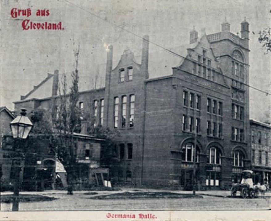 This was the home of the Germania Turnverein on Erie St (now E 9th) during the third quarter of the 19th century until they moved into their current location in 1893. | Date: Late 19th Century | Source: Cleveland Memory Project, Cleveland State University Library Special CollectionsDownload Original File