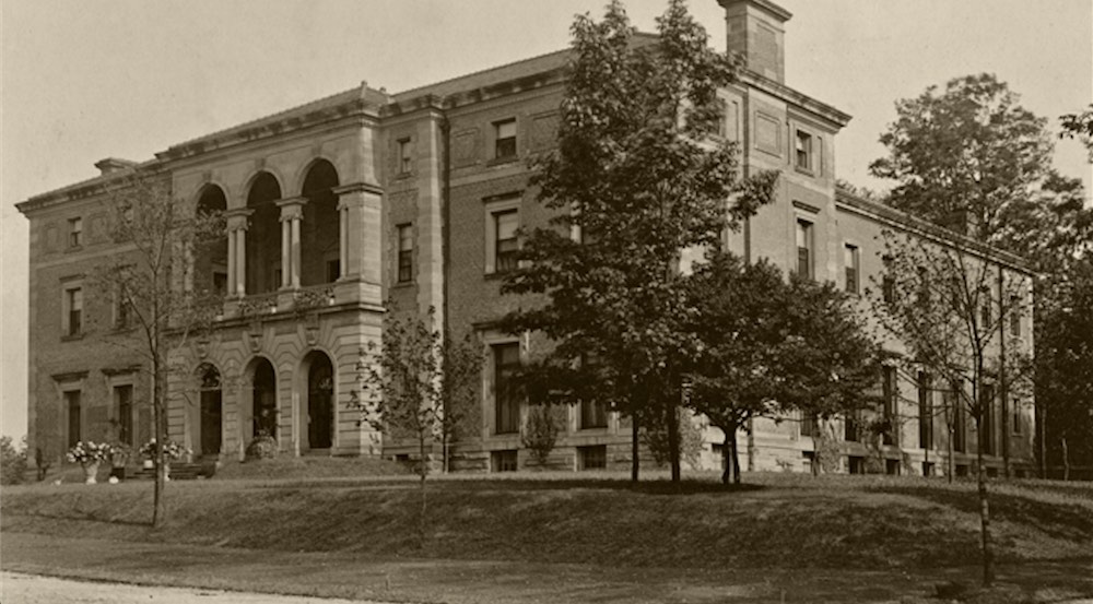 Patrick Calhoun’s home at 2620 Derbyshire was a three-story brick palazzo—one of the largest residences, if not the largest, in the Euclid Heights subdivision. It included twelve bedrooms, a ballroom, six servant bedrooms, and an interior courtyard. After Calhoun left Cleveland around 1917, the house was inhabited by Dr. George Crile, one of the founders of the Cleveland Clinic. The structure was demolished in the 1940s to make way for the Cedar Avenue Baptist Church (now called the Cedar Hill Baptist Church). The coach house bordering Overlook Lane still stands. | Source: Cleveland Heights Historical SocietyDownload Original File