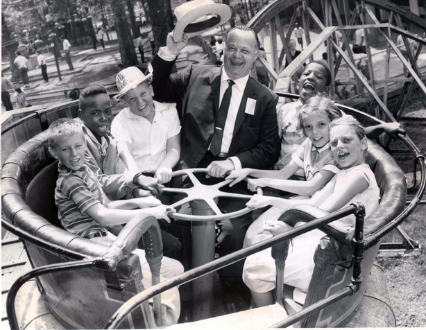 Councilman Jack Russell enjoys a ride at Euclid Beach Park on Ward 16 Picnic Day, 1961 | Source: Cleveland State University. Michael Schwartz Library. Division of Special Collections. Cleveland Press Collection.Download Original File
