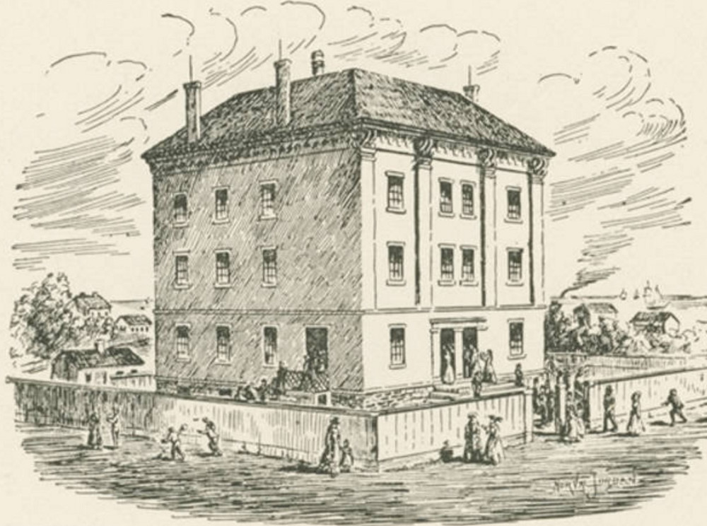 Built in 1850 and located on Kentucky (West 38th) Street near Terrett Avenue, its third floor served from 1855-1861 as home to Cleveland's first west side public high school, initially called Branch High School, but later known as West High School. | Source: Cleveland State University, Michael Schwartz Library, Special CollectionsDownload Original File