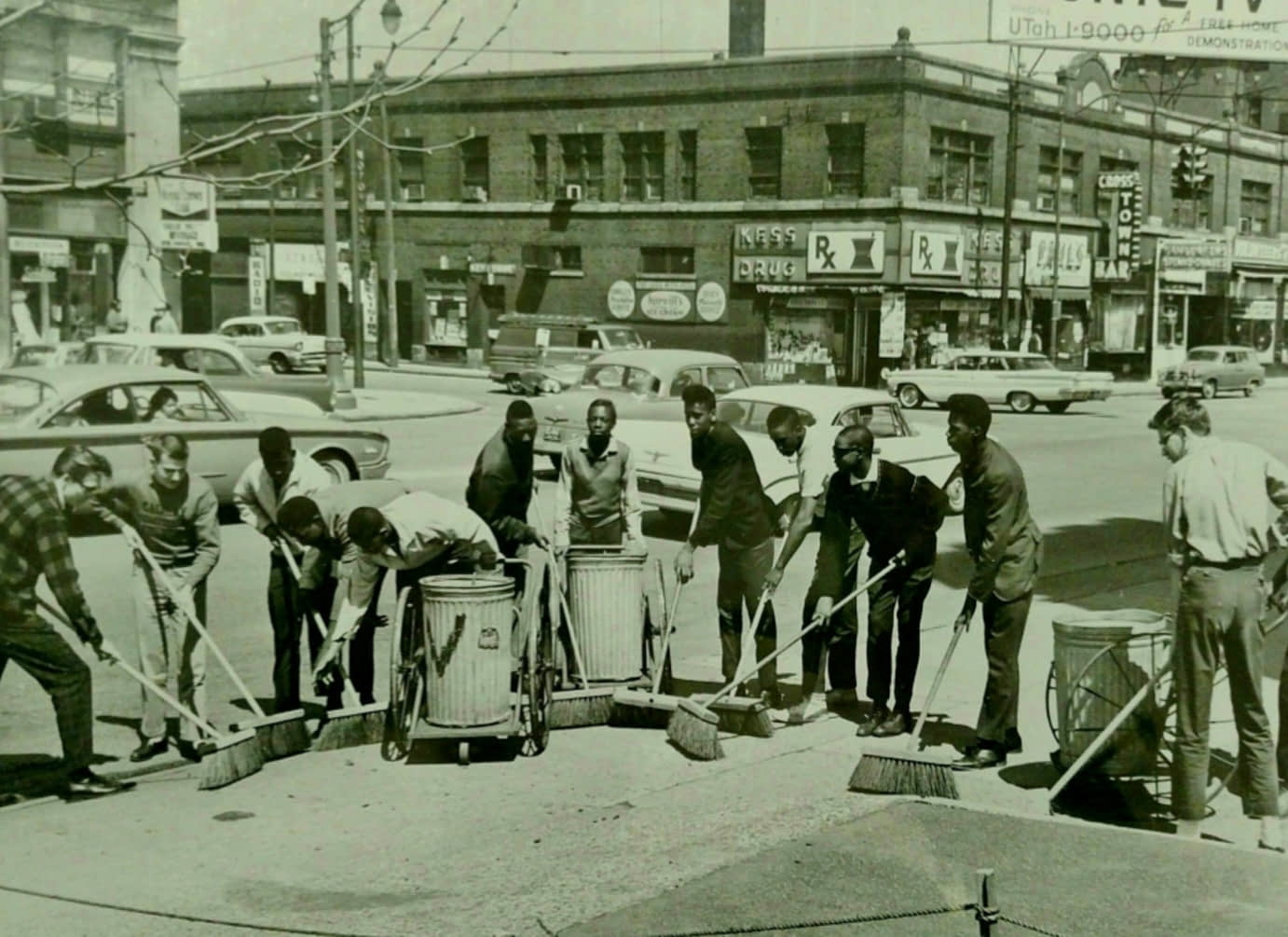 Calvary congregational members and community residents worked together to revitalize the neighborhood. Calvary, as a neighborhood church, brought church to the people. This image was taken in front of the church on Euclid Avenue. Behind the boys, the image shows the intersection of 79th and Euclid Avenue in the background. | Date: Ca. 1960 | Source: New Life at CalvaryDownload Original File