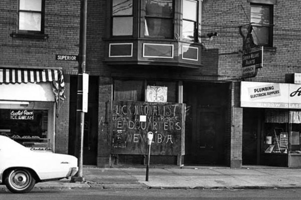 Fred (Ahmed) Evans' New Libya was a precursor to Jones' Afro Set. After Evans' arrest in 1968, most members of New Libya were absorbed into the Afro Set. The New Libya storefront closely resembled the style of the Afro Set storefront (of which there are few extant images). | Creator: Van Dillard | Date: October 23, 1967 | Source: Cleveland Memory Project, Cleveland State University Library Special CollectionsDownload Original File