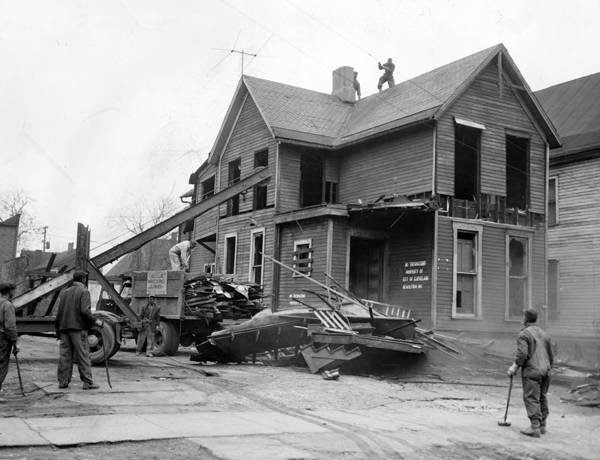 A photograph from the Longwood Urban Renewal project. This project set the stage for what would become of the East Woodland Urban Renewal project. | Date: March 18, 1955 | Source: Cleveland Memory Project, Cleveland State University Library Special CollectionsDownload Original File