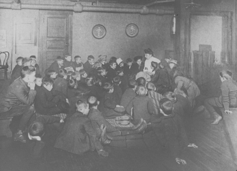 During his 36 years as librarian of the Cleveland Public Library, William H. Brett worked to extend access and availability of materials to children. Space was allocated in the reading room until a separate library could be devoted to the institution's young patrons in 1898. Under the guidance of then vice-librarian Linda Eastman, the Children's Library League was formed in 1897. Similar organizations quickly emerged in libraries throughout the country, modeling themselves after the Cleveland Public Library. Guided by the motto "CLEAN HEARTS, CLEAN HANDS, CLEAN MINDS," the league taught children how to properly care for and handle books.Download Original File