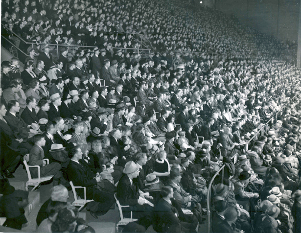 Spectators at the Arena, 1939 ID: 846 | This file appears in: The Arena Image courtesy of Cleveland State Library Special Collections Download Original File "Spectators at the Arena, 1939" appears in: The Arena