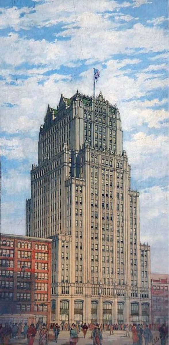 This architectural rendering by Hubbell & Benes shows what may be an early proposed version of the Ohio Bell Telephone Building. | Date: June 15, 1924 | Source: Cleveland Memory Project, Cleveland State University Library Special CollectionsDownload Original File