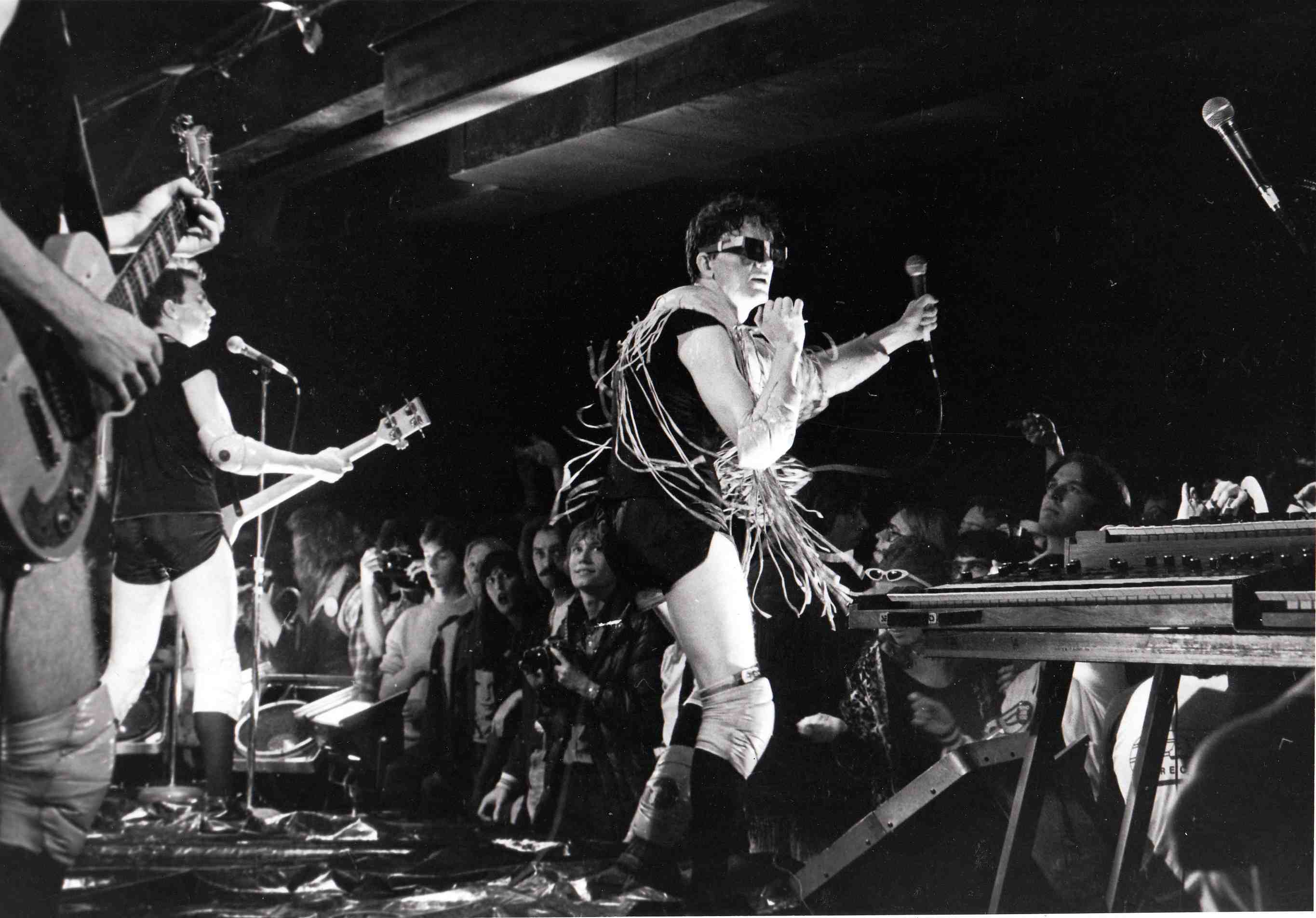 Devo onstage at the Agora, ca. 1978 ID: 8528 | This file appears in: The Cleveland Agora During the late 1970s, Akron, Ohio became a hotbed for new rock and roll bands. Devo's 1980 song "Whip It!" became an international hit. | Source: Agora Theater Download Original File SourceAgora Theater "Devo onstage at the Agora, ca. 1978" appears in: The Cleveland Agora