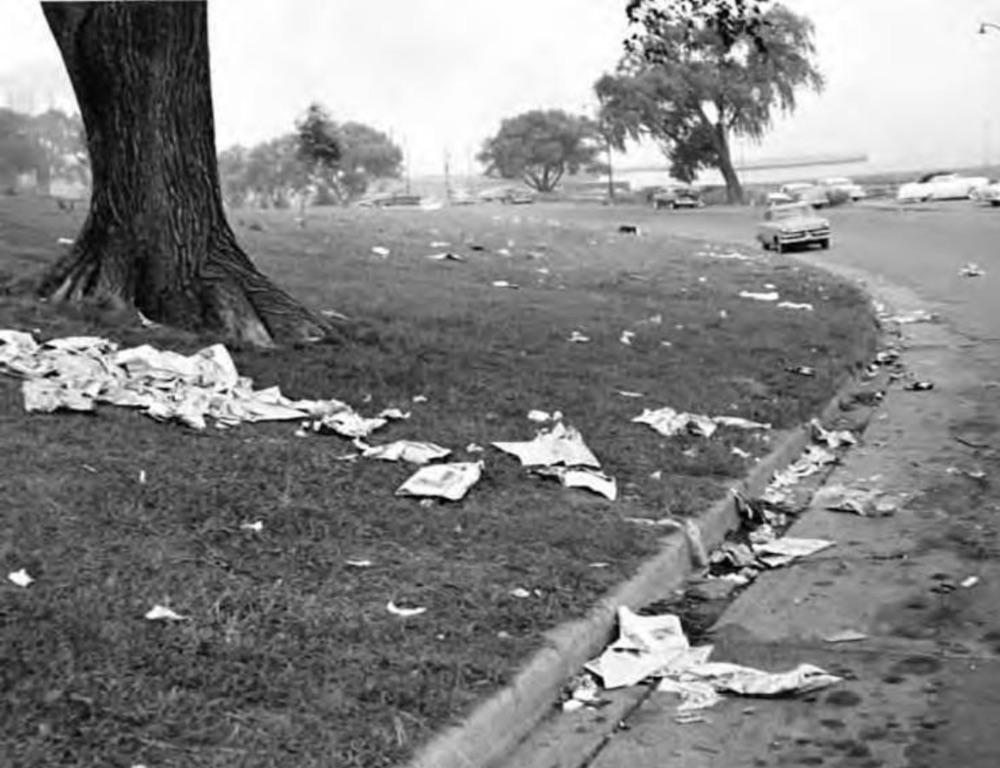"Old newspapers and other litter scattered throughout Gordon Park." -- photo verso | Creator: Herman Seid | Date: June 19, 1957 | Source: Cleveland Memory Project, Cleveland State University Library Special CollectionsDownload Original File
