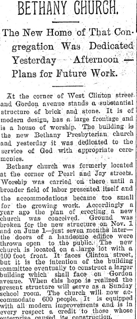On June 2, 1895, the new Bethany Presbyterian Church on the corner of West Clinton Avenue and W. 65th Street was formally dedicated. It was a remarkable achievement for the parish, which was small compared to other neighborhood congregations. | Source: Cleveland State University, Michael Schwartz Library, Special CollectionsDownload Original File