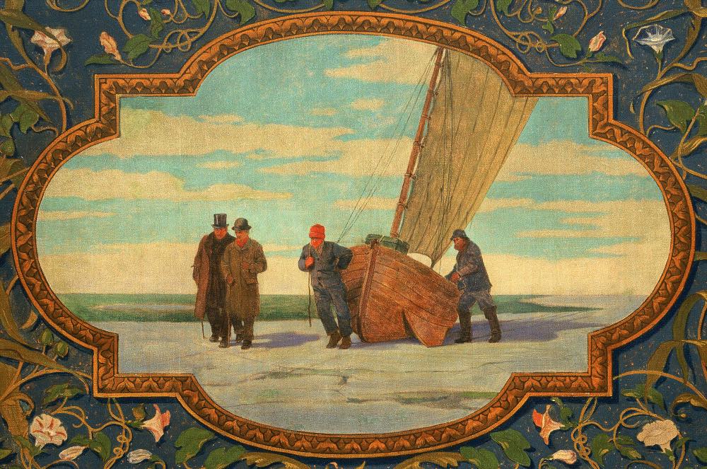 Sail and Iceboat Post - Baltic ID: 8578 | This file appears in: Howard M. Metzenbaum United States Courthouse "Sail and Iceboat Post - Baltic" is one of 63 paintings by Francis Davis Millet adorning the interior of the Metzenbaum Courthouse. | Source: U.S. General Services Administration Download Original File SourceU.S. General Services Administration "Sail and Iceboat Post - Baltic" appears in: Howard M. Metzenbaum United States Courthouse