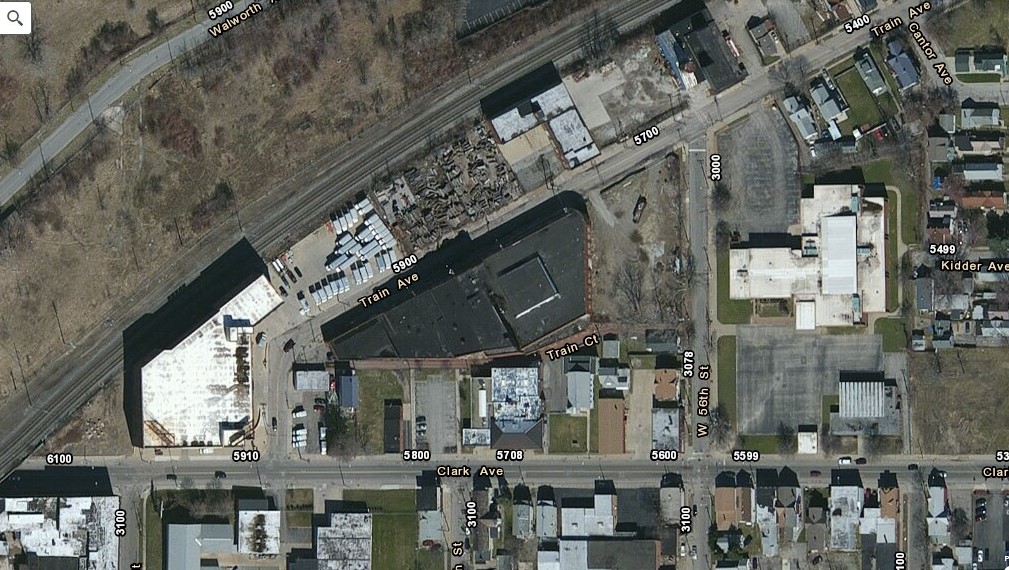 This Google map presents a view of the portion of Train Avenue on the west side of Cleveland where the Standard Brewing Company once produced its famous Erin Brew beer. While the brewery building on the north side of Train were torn down in 1974 and the land now used in part as a parking lot and in part for open storage, the other buildings near West 61st and on the south side of Train Avenue remain standing and are fully occupied by local businesses as of the summer of 2017. | Source: Google MapsDownload Original File
