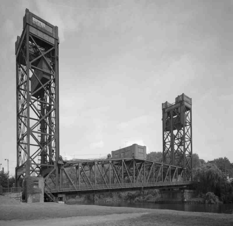 Lift Bridge ID: 867 | This file appears in: Columbus Street Bridge The Columbus Road lift bridge replaced the double swing bridge in 1940. | Date: 1940 | Source: Image courtesy of the Library of Congress Download Original File SourceImage courtesy of the Library of CongressDate1940 "Lift Bridge" appears in: Columbus Street Bridge