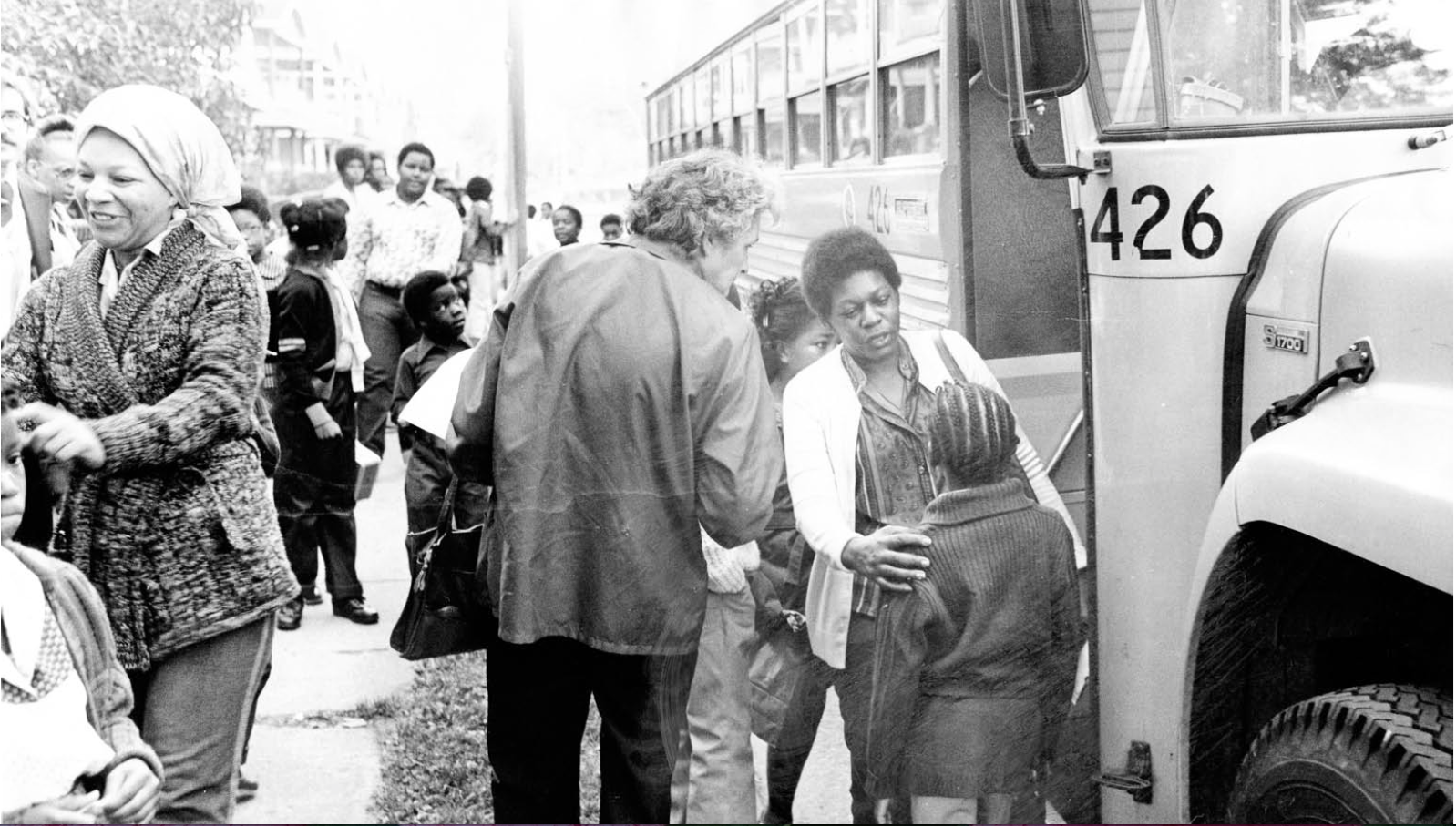 September 10, 1979 is acknowledged as the "first day" of busing to attain a desegregated school system in Cleveland. A three-phase implementation plan was enacted to balance the schools racially. | Date: September 10, 1979 | Source: The Cleveland Press Collection, Michael Schwartz Library, Cleveland State University.