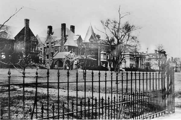 In this picture (circa 1910s) are, from left to right, Euclid Avenue mansions belonging to Charles Binhgam, Harry Devereux, Samuel Mather, and Leonard Hanna. Despite the allure of the mansions on Millionaire's Row, commercial development and the construction of the Innerbelt Freeway led to the demolition of many of the elaborate structures.