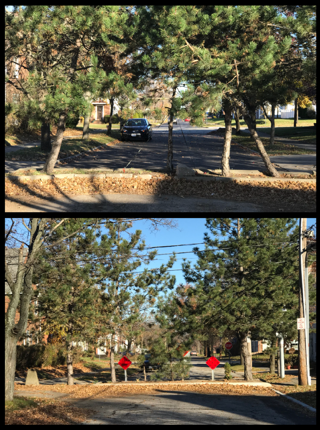 Photograph of the barricades that still stand today. Top image displays the barrier on Avalon Road, facing Invermere Road of Cleveland. The bottom image displays the barrier on Ingleside Road, also facing Invermere, on the Cleveland side of the border. | Creator: Liz Sisley | Date: November 2017Download Original File