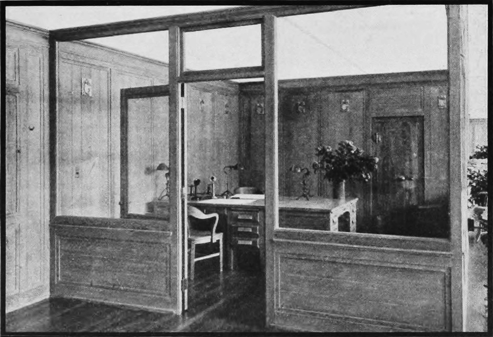 The showroom and the offices were located at the front of the Baker Electric building. A prominent design studio in Cleveland, Rohrheimer-Brooks, designed and decorated the interior of the building. | Date: 1911 | Source: Tim Evanson on FlickrDownload Original File
