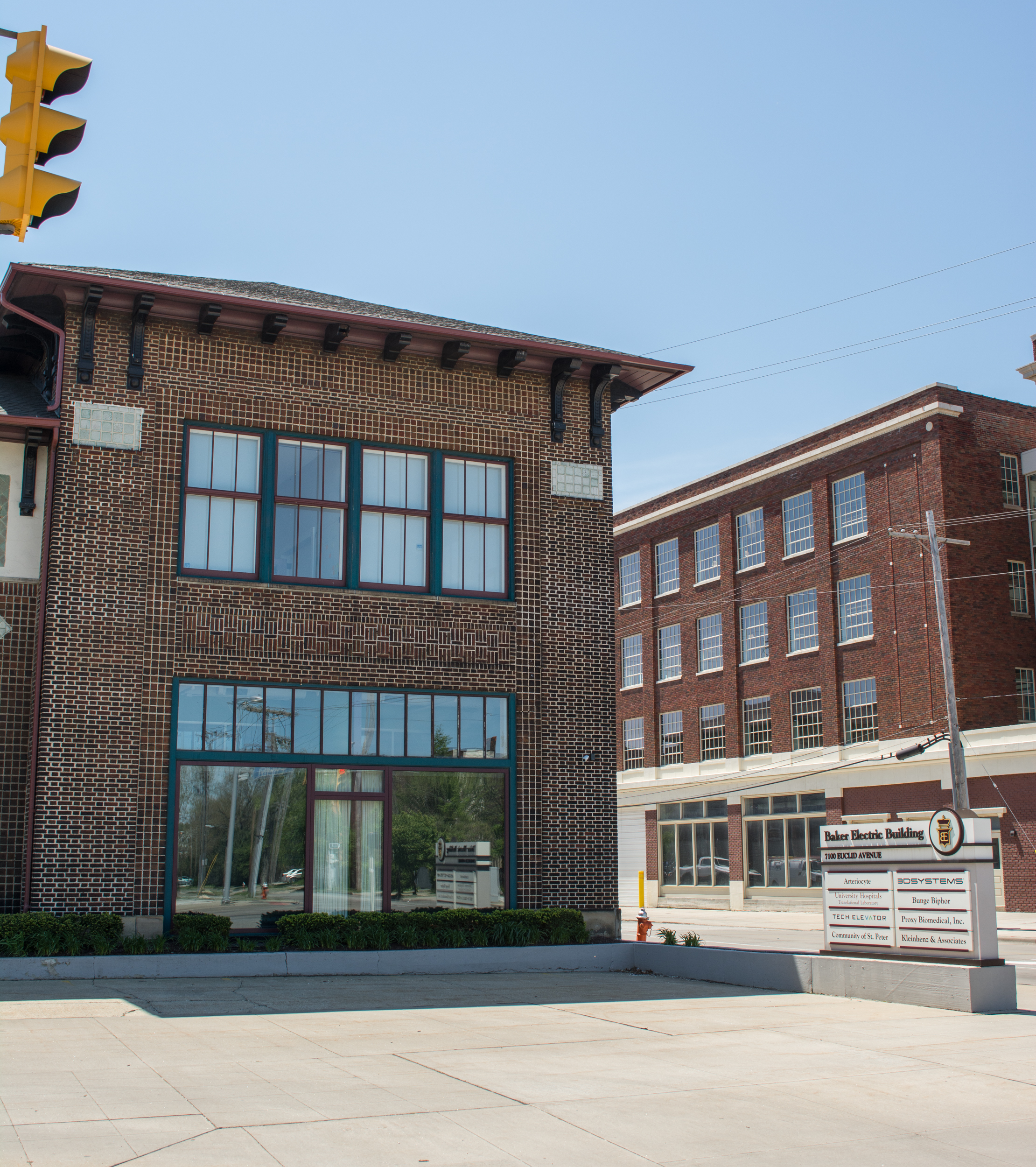 In 2006 the Building underwent a $7.1 million restoration project. At the time this photgraph was taken the Baker Electric buildings tenants included Arteriocyte, University Hospitals Translational Laboratory, Tech Elevator, Community of St. Peter, 3DSystems, Bunge Biphor, Proxy Biomedical, Inc., and Kleinhenz & Associates. | Creator: Tim Evanson | Date: May 9, 2017 | Source: FlickrDownload Original File