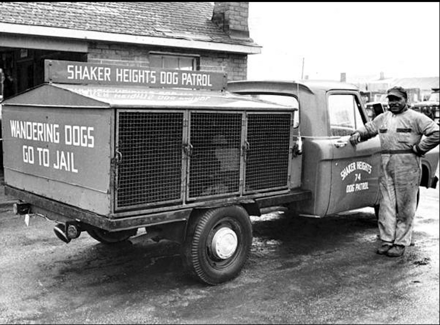 This 1965 photo shows one of the vehicles kept at the Shaker Service Yard on East 173rd Street in Cleveland, as well as a part of one of the service buildings on that site. The Service Department employee in the photo is Harvey Hurd. | Source: Cleveland State University, Michael Schwartz Library, Special Collections; and Shaker Heights Public Library, Local History CollectionDownload Original File