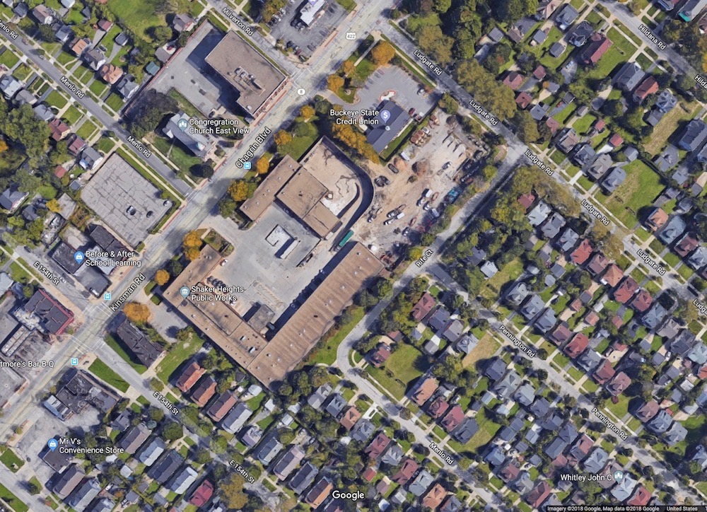 Aerial View of Service Center ID: 8971 | This file appears in: Shaker Heights Service Center This 2017 photo of the Center shows its location on Chagrin Boulevard near the Cleveland city line and its juxtaposition to the Moreland neighborhood to the south. | Source: Google Maps Download Original File SourceGoogle Maps "Aerial View of Service Center" appears in: Shaker Heights Service Center