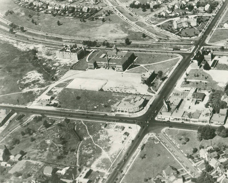 This aerial view of the grounds surrounding Moreland School in 1932 displays the availability of open space in Shaker Heights during its developmental years. Designated recreational facilities for the Moreland community were grown and managed by local school administrators prior to the creation of Chelton Park in the 1960s. | Source: Cleveland State University, Michael Schwartz Library, Special CollectionsDownload Original File