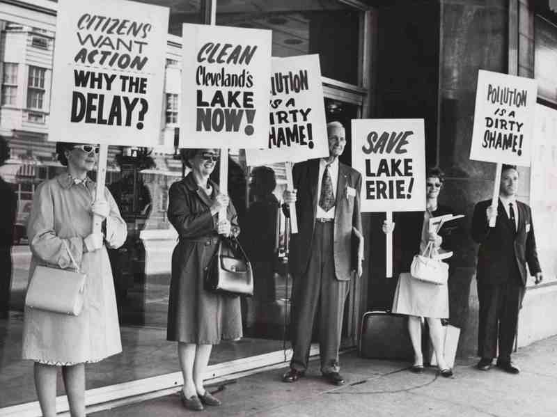 Protestors, 1968 ID: 924 | This file appears in: Lake Erie Anti-pollution protestors hold signs outside of the water pollution hearings in Cleveland, 1968. | Date: 1968 | Source: Cleveland State Library Special Collections Download Original File SourceCleveland State Library Special CollectionsDate1968 "Protestors, 1968" appears in: Lake Erie