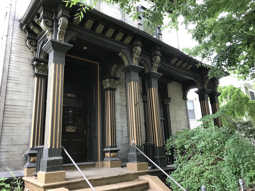 According to local architectural historian, Craig Bobby, the Belden Seymour house is special because of its Italianate grandeur, which includes window surrounds, ornate doors, grand front porch and portico, and other elaborate architectural features. This photo, which was taken in 2018, shows much of the detailed craftmanship of the front porch. | Source: Jim DubelkoDownload Original File