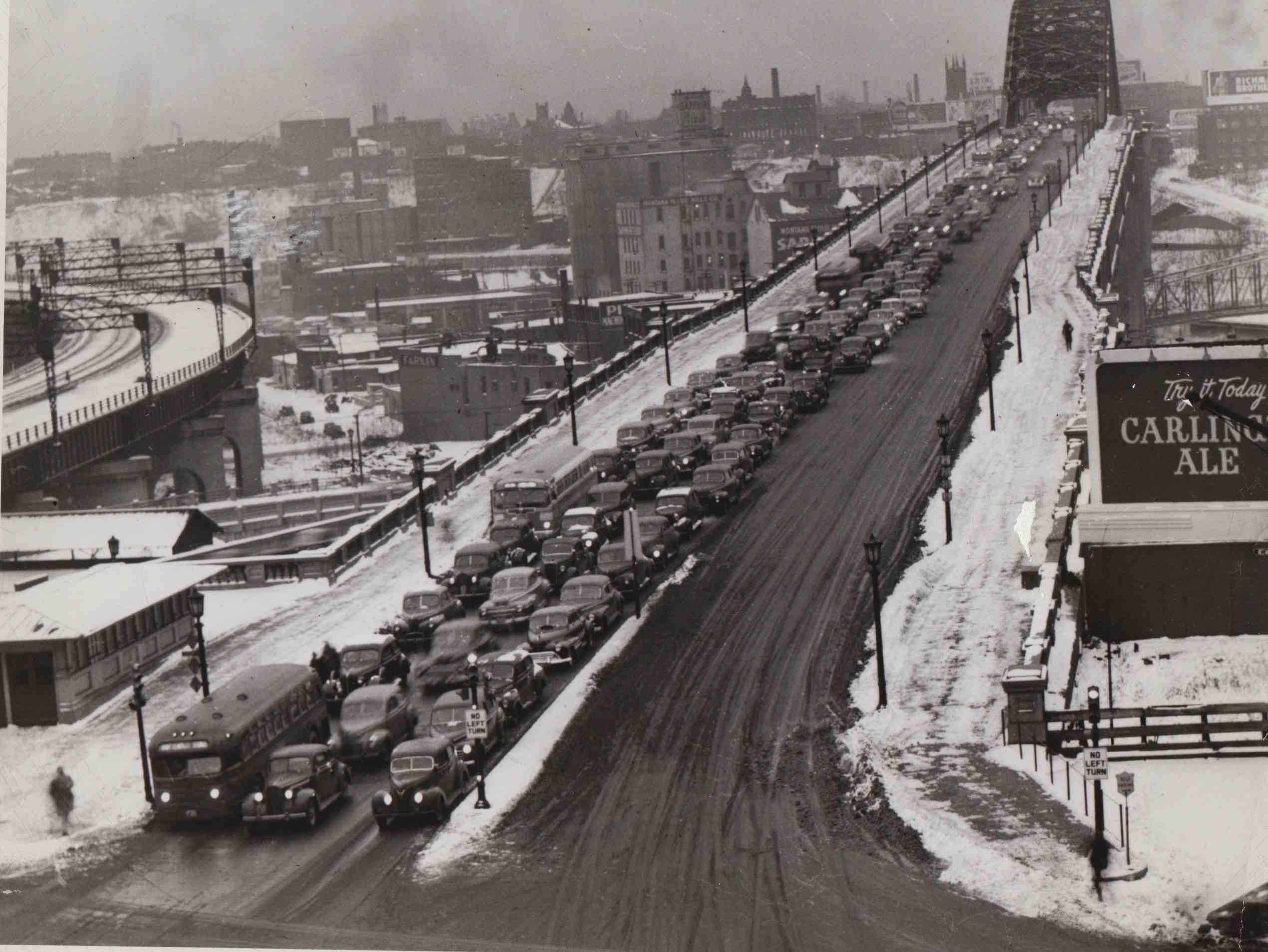 Traffic Jam, 1948 ID: 946 | This file appears in: Detroit-Superior Bridge Morning rush hour traffic heading into Downtown leads to congestion on the Detroit-Superior Bridge's eastbound lanes. | Date: 1948 | Source: Cleveland State Library Special Collections Download Original File SourceCleveland State Library Special CollectionsDate1948 "Traffic Jam, 1948" appears in: Detroit-Superior Bridge