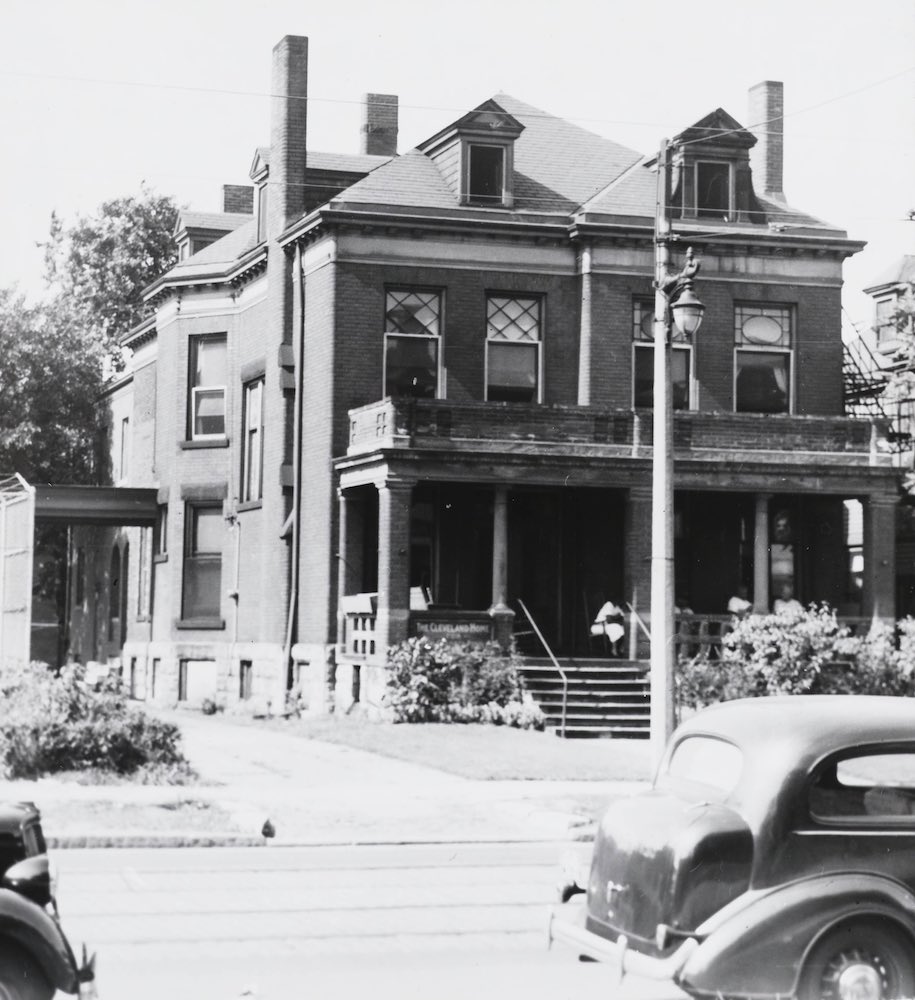 The Cleveland Home for Aged Colored People in 1940 located on 4807 Cedar Ave Cleveland, OH. Sitting on the front porch are some of the home's residents, enjoying their day. | Creator: Cleveland Public Library | Date: 1940 | Source: Cleveland Public Library. Photograph CollectionDownload Original File