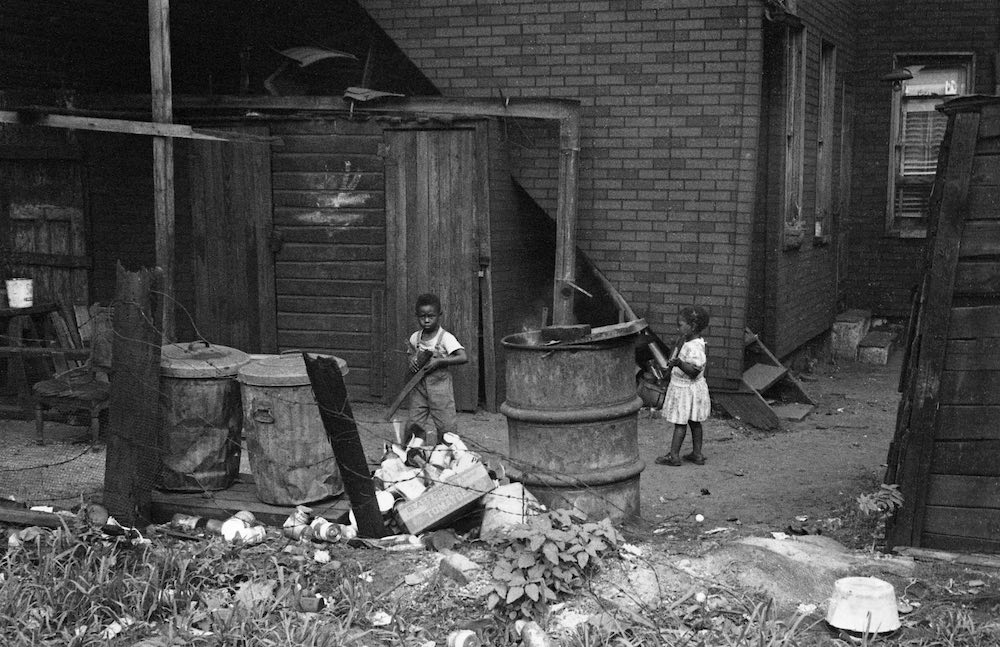 Children playing in and around dilapidated housing was a primary cause for concern among residents of Longwood. The image depicts two children playing near a house on Scovill Avenue. The state of the building and the refuse behind it are noticeable. Residents after the project was built were concerned with “Ghost Houses,” or abandoned houses that children might play in and get hurt because the structures were in such bad shape. | Creator: Jasper Wood | Date: ca. 1947-1955 | Source: Jasper Wood Collection, Cleveland Public Library Digital GalleryDownload Original File