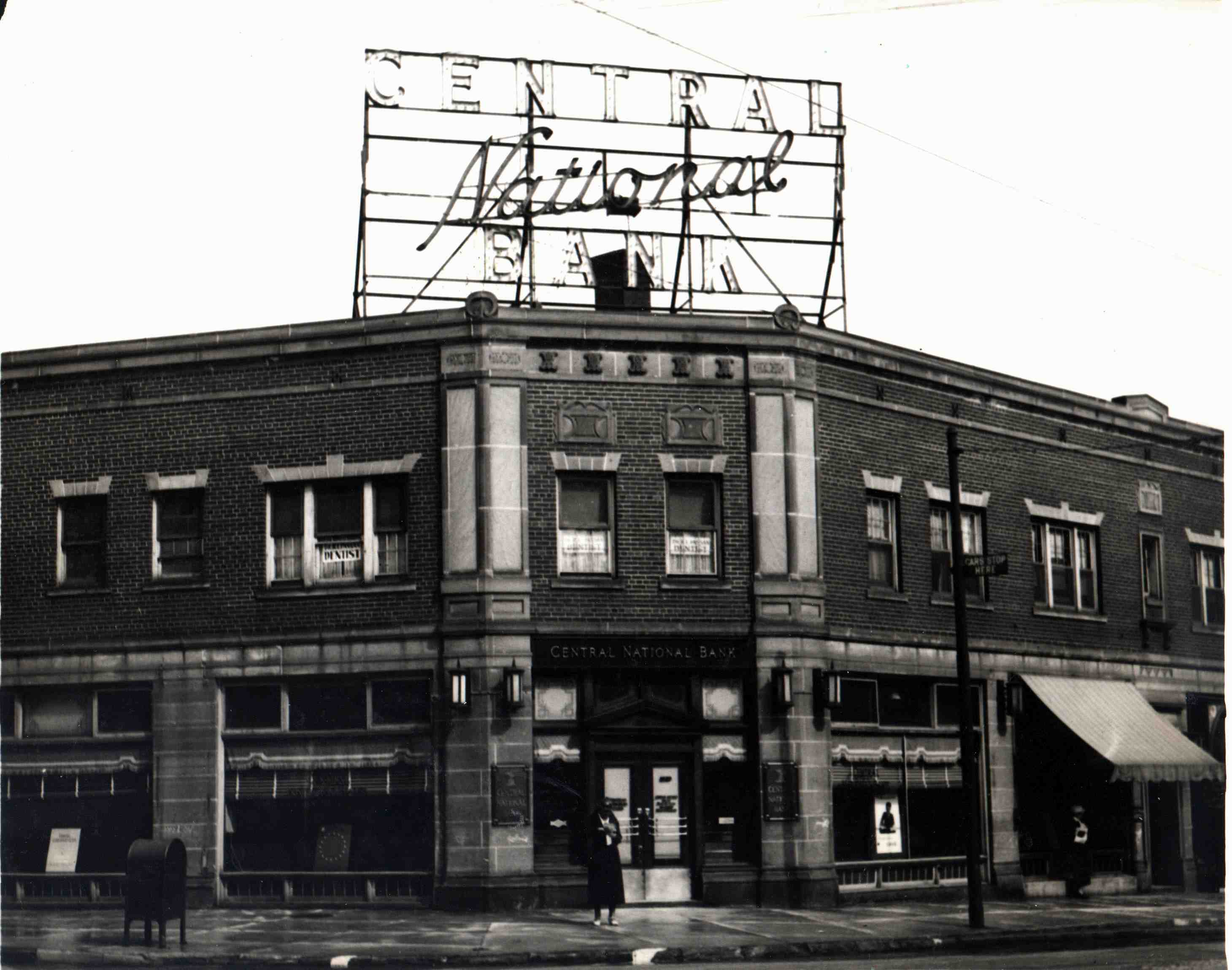 Central National Bank, ca. 1935 ID: 957 | This file appears in: Coventry Village The Central National Bank building is located on the corner of Coventry and Lancashire Roads. | Date: ca. 1935 | Source: Cleveland Heights Historical Society Download Original File SourceCleveland Heights Historical SocietyDateca. 1935 "Central National Bank, ca. 1935" appears in: Coventry Village
