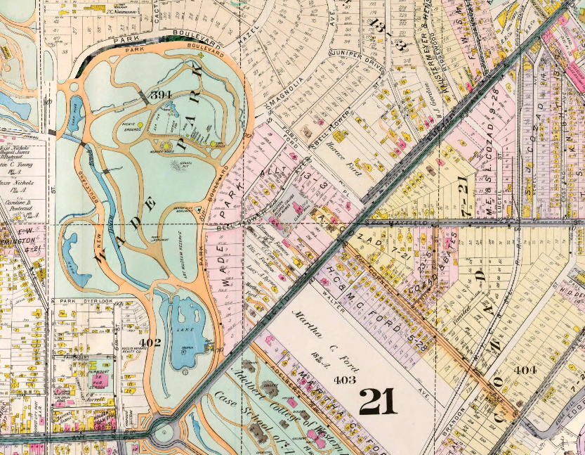 Wade Park in 1898 ID: 9583 | This file appears in: Cleveland Botanical Garden Note 1) the specific location of attractions within the Wade Park Zoo and 2) that Doan Creek (now culverted) connects directly with Wade Park Lagoon. | Source: Cleveland Historic Maps Download Original File SourceCleveland Historic Maps "Wade Park in 1898" appears in: Cleveland Botanical Garden