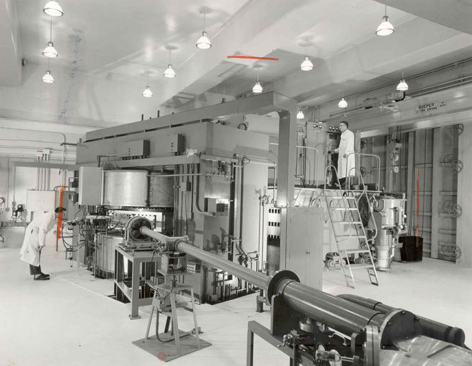 A cyclotron is a particle accelrator used to split atoms. It was used in the testing of power systems being designed for use on space shuttles. | Date: 1958 | Source: Cleveland State University, Michael Schwartz Library, Special CollectionsDownload Original File