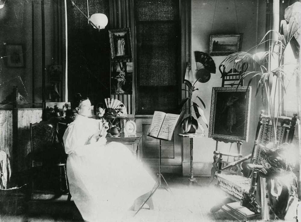 "Martha Wolfenstein (1869-1906), a writer, is shown in her studio. Her two best known works were The Renegade and Other Tales (1905) and The Idylls of the Gass (1901). She was the daughter of Dr. Samuel Wolfenstein, superintendent of the Jewish Orphan Asylum, c. 1900." | Source: Cleveland Jewish Archives, Western Reserve Historical SocietyDownload Original File