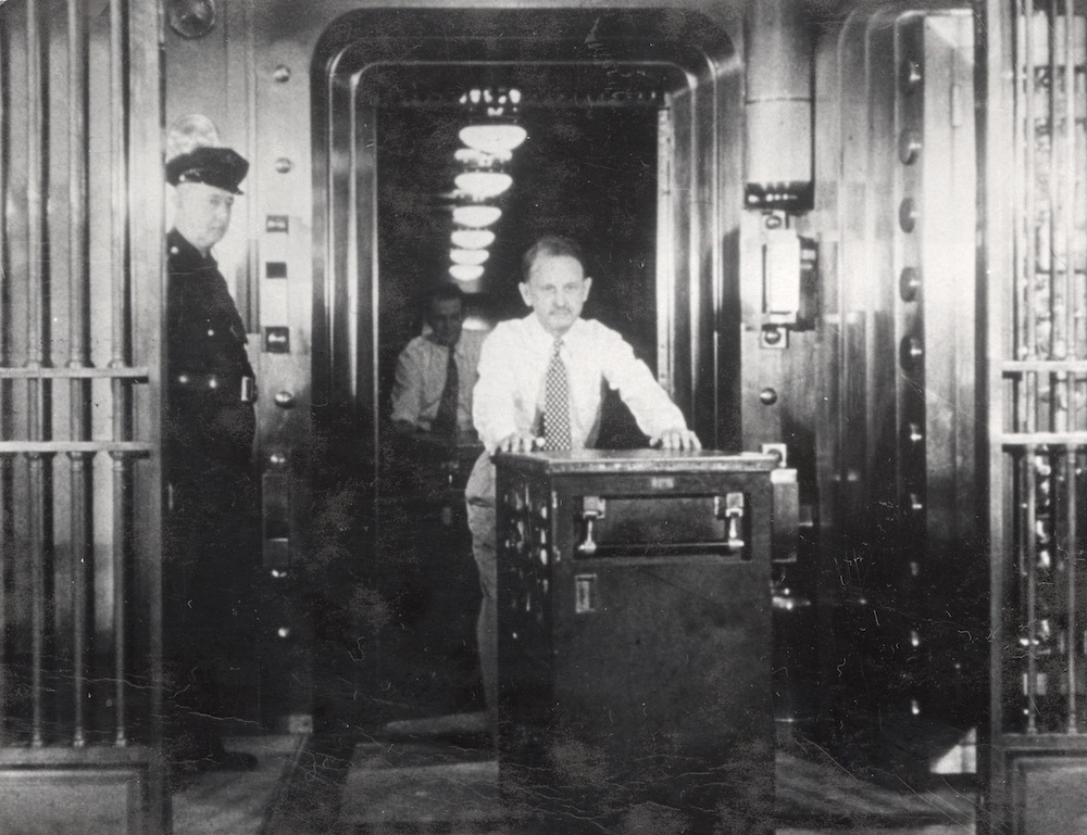 The Vault ID: 9805 | This file appears in: Union Trust Building A big bank needs a big vault. This photo of the vault in the Union Trust Building (by this time it was called the Union Commerce Building) was taken in 1946. | Source: Cleveland Public Library, Photograph Collection Download Original File SourceCleveland Public Library, Photograph Collection "The Vault" appears in: Union Trust Building